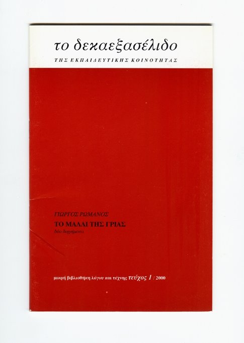 Από τους Έλληνες, για μένα έχει διαχρονικό χαρακτήρα ο Παπαδιαμάντης, κι έτσι επανέρχομαι με όλο και πιο απαιτητικούς αναγνωστικούς κύκλους, αλλά και γραπτή μελέτη, στη Φόνισσα και σε διηγήματα όπως στο Έρωτας στα χιόνια, Έρωτας στο κύμα και πολλά άλλα. Τα κριτήριά μου συγκροτούνται πάντοτε πάνω στην ενδιάθετη, πηγαία και τελικά αξεπέραστη μαστοριά του Σκιαθίτη συγγραφέα. Για τους ίδιους λόγους ξεχωρίζω τον Αιχμάλωτο, του Στρατή Δούκα, τους Κεκαρμένους, του Ν. Κάσδαγλη, το Φύλλο το Πηγάδι και τ’ Αγγέλιασμα, του Βασιλικού, τις Αγελάδες, και το Βάραθρο, του Ε. Χ. Γονατά, κ.α.