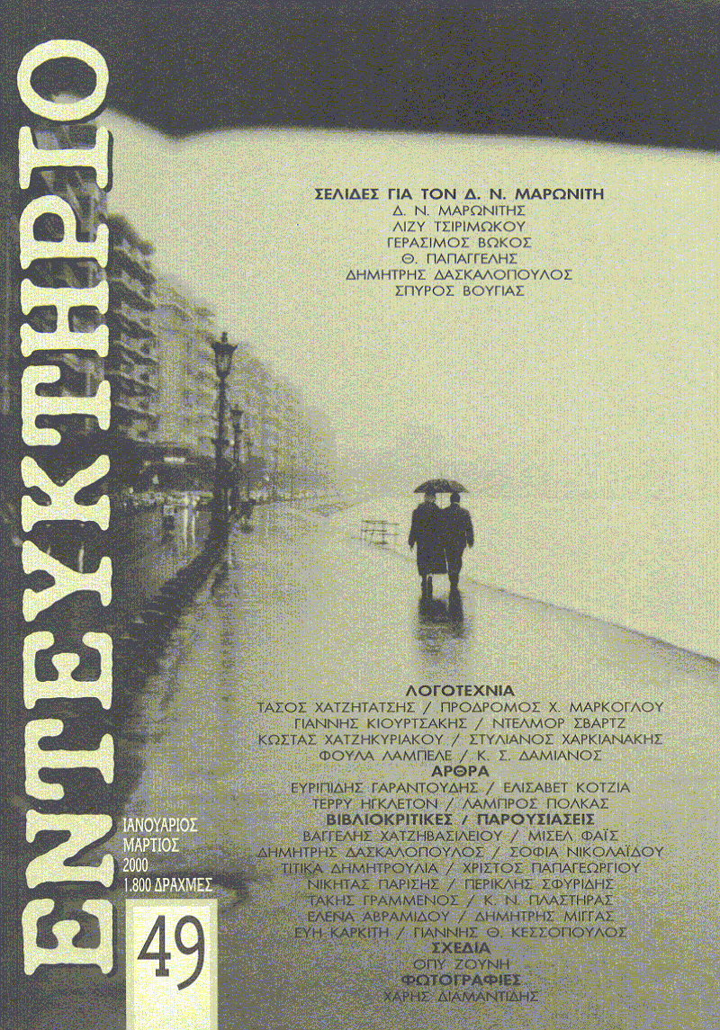 Διαβάζω κι εκείνους που κάποτε γνώρισα ως ταπεινός τερματοφύλακας της μπάρας του Ερωδού της Διαγωνίου, περάσματος γραφέων και λογογραφέων, τον Γιώργο Σκαμπαρδώνη με τα συνεργεία του, τον Γιώργο Κάτο με τα νεκροταφεία του, τον Σάκη Παπαδημητρίου με τις ηχογραφήσεις του, τον Μάριο Μαρίνο Χαραλάμπους με τα οράματά του, τον Σταύρο Ζαφειρίου και τον Ηλία Κουτσούκο που θέλω να πιστεύω πως στον πάγκο μου εμπνεύστηκαν μερικές λέξεις τους (για τον «Αλκοολικό Χριστουγεννιάτικο Πεζοναύτη» του τελευταίου θα έβαζα και στοίχημα). Κι ένα τραπέζι πάντα για τον Κώστα Λαχά μ’ εκείνο το εκπληκτικό κείμενο για μια λέξη που έπεσε ανέλπιστα στο δρόμο, Κασσάνδρου και Πολιορκητού γωνία, αναστατώνοντας μια ολόκληρη περιοχή.