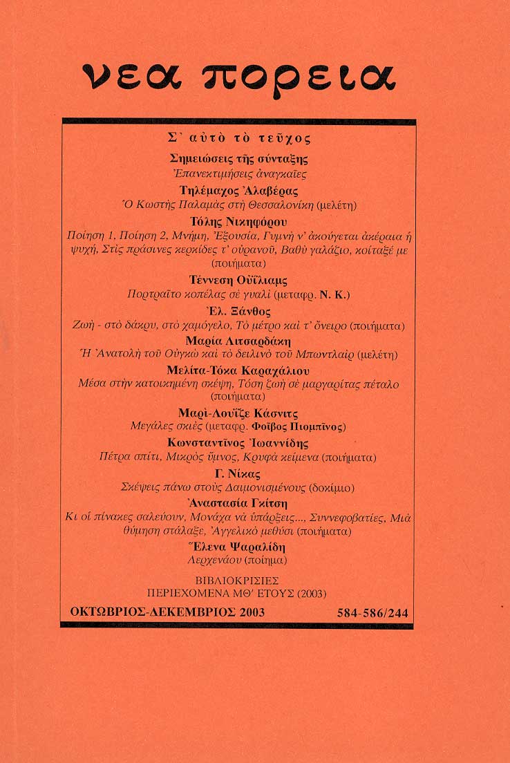 Από άλλους ξεχασμένους δρόμους πέρασε ο Ναπολέων Λαπαθιώτης, εδώ ο Γ. Κιτσόπουλος συνεξέδωσε τον Κοχλία, στις ξενοδοχειακές ταράτσες του Καραγάτση ακούγονταν slow-fox και Stormy Weather, τις Νέες Φυλακές Κασσάνδρου μνημείωσε ο Τάσος Δαρβέρης. Δεν λείπει φυσικά η χορεία των αγιασμένων της: ο Πατέρας της Μητέρας Πόλης κυρ Νίκος Γαβριήλ Πεντζίκης, ο αειδιάβαστος Γιώργος Ιωάννου, ο αλησμόνητος Τόλης Καζαντζής….