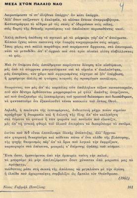 Λογοτεχνείο, αρ. 56 Νίκος Γαβριήλ Πεντζίκης, «Μέσα στον παλαιό ναό», Πατριδογνωσία, ανάτυπο από το περιοδικό Μορφές, 1950, σ. 101. Στον Αλέξανδρο Κοσματόπουλο Κοινοποιήστε: Κλικ για κοινοποίηση στο Print & PDF(Ανοίγει σε νέο παράθυρο) Print & PDF Κάνε κλικ για να μοιραστείς στο X(Ανοίγει σε νέο παράθυρο) Χ Κλικ για αποστολή ενός συνδέσμου μέσω email σε έναν/μία φίλο/η(Ανοίγει σε νέο παράθυρο) Email Πατήστε για κοινοποίηση στο Facebook(Ανοίγει σε νέο παράθυρο) Facebook Περισσότερα Κλικ για εκτύπωση(Ανοίγει σε νέο παράθυρο) Εκτύπωση Μου αρέσει! Φόρτωση... Σχετικά