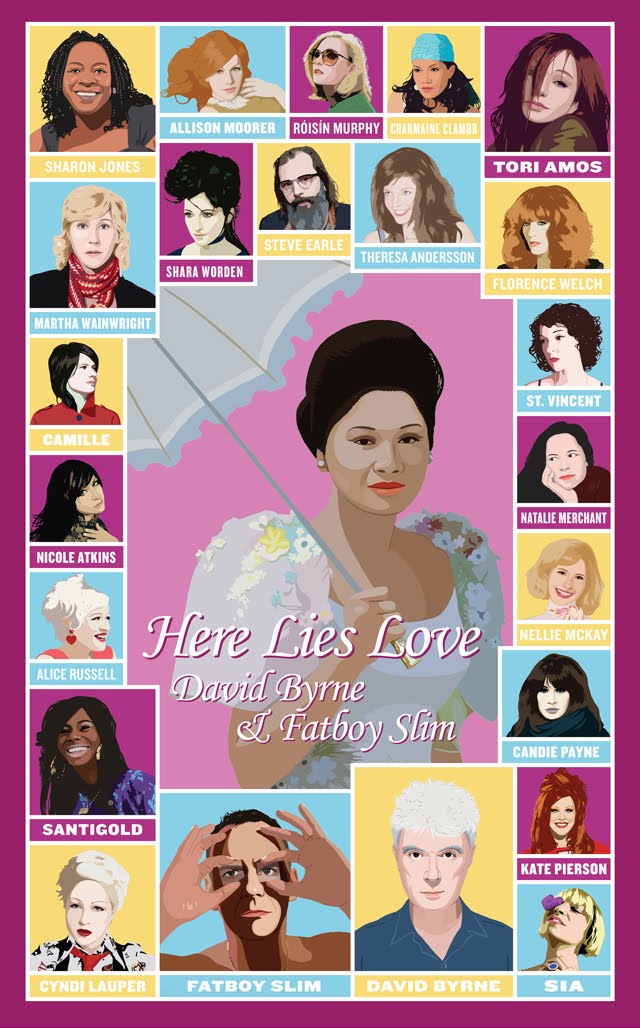 Μόνο που το σύνολο με τις 19 τραγουδιάρες μοιάζει περισσότερο με καλλιστεία για singer – songwriters. Βάλε και μια άσχημη ρε Δαβίδ, για το ξεκάρφωμα. Υπάρχουν δυο εξαιρέσεις εκτός συναγωνισμού λόγω μεσοκοπίας, οι ερχόμενες από τα αζήτητα Kate Pierson (ναι, των B52, η φωνή και το στιλ της οποίας, παραδόξως, δεν άλλαξαν στο παραμικρό) και… Cyndi Lauper (ναι, στριγγλίζει ακόμα). Μόνο η Martha Wainwright και η θεατρινίστική της εμμονή ταιριάζει στο κάδρο του Μπροντουγεϊκού The Rose of Tacloban – ούτε καν η μόνη Φιλιππινέζα εδώ Charmaine Clamor (τζαζίστρια βέβαια). Φυσικά ο Byrne είναι πολύ μεγαλομανής να μείνει απόξω από τις φωνές, οπότε κάνει μια μικρή εξαίρεση και τραγουδάει σε δυο κομμάτια, καλώντας για άλλοθι και τον αριστερό Steve Earle να τραγουδήσει ως … Marcos. Για γέλια ή για κλάματα;