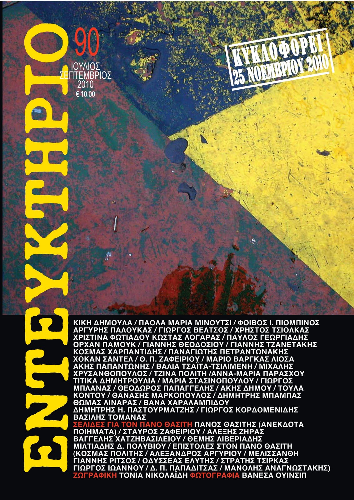 Το πολυσέλιδο αφιέρωμα του περιοδικού «ανήκει» στον Πάνο Θασίτη (1923 – 2008) (φωτ.2), τον ολιγογράφο ποιητή και οξυδερκή δοκιμιογράφο και κριτικό, που γραμματολογικά έχει καταχωρηθεί στην «τριάδα των ποιητών της ήττας» (μαζί με τον Μανόλη Αναγνωστάκη και τον Κλείτο Κύρου). Πρόκειται όμως για φωνές ομογάλακτες, όχι όμοιες. Ο Θασίτης υπήρξε πιο νοησιαρχικός αλλά και εκλεκτικός ως προς τις θεωρητικές του ενασχολήσεις και ευκρινείς είναι οι εσωτερικές διαφοροποιήσεις τους ως προς την γλώσσα και την τεχνική αλλά και σε άλλα στοιχεία που εντοπίζει ο Αλέξης Ζήρας. Μεταξύ των υπόλοιπων κειμένων ξεχωρίζει η δια χειρός Μιλτιάδη Δ. Πολυβίου παρουσίαση τεκμηρίων από την πολιτική δράση και τις διώξεις του από μια εποχή «στην οποία το να είσαι αριστερός διανοούμενος δεν ήταν ανέξοδη ρητορική αλλά συνεπαγόταν βαρύ προσωπικό τίμημα».