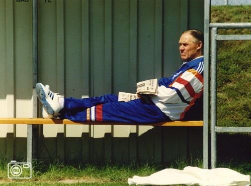 Πρώτη δημοσίευση: Α΄ μέρος: Βιβλιοθήκη της Ελευθεροτυπίας, τεύχος 637, 8.1.2011 (και εδώ). Στην εφημερίδα ο τίτλος Ασκήσεις επί χόρτου μετατράπηκε για ακατανόητο λόγο σε Ασκήσεις επί χόρτου πάντα (!). Ίσως ο στοιχειοθέτης είχε μια κάποια ποιητική έκλαμψη! Το Β΄ μέρος δημοσιεύεται πρώτη φορά εδώ. Στις φωτογραφίες: Μπιλ Σάνκλι, Χελένιο Χερρέα, Χορευτής Κρόιφ, Ρϊνους Μίχελς, συγγραφέας.