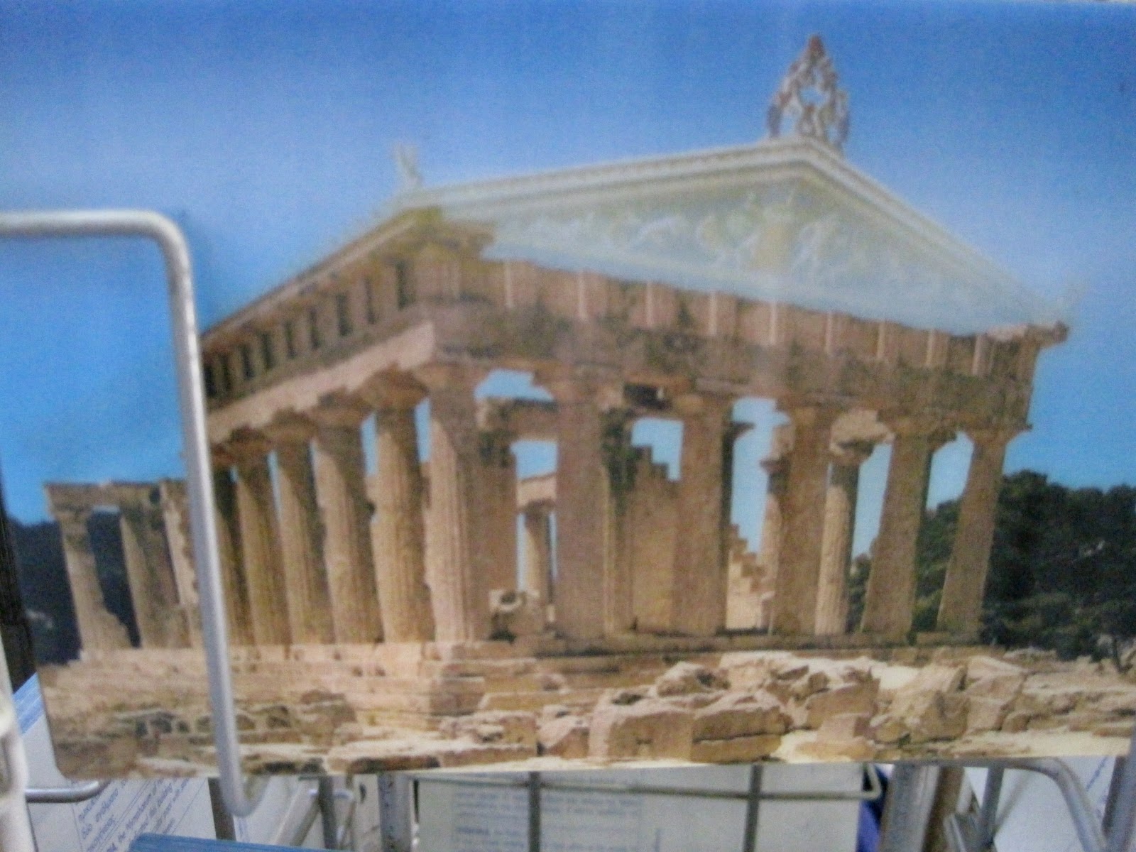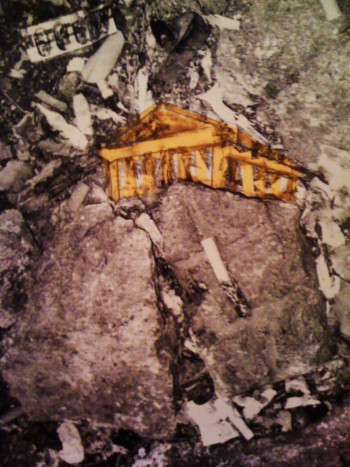 Στις φωτογραφίες: Ο συγγραφέας μπροστά σε μελλοντικά αρχαιολογικά ευρήματα (φωτ. Γιάννης Ισιδώρου). / Ο Παρθενώνας μέσα από έναν φακό του. / Η κατά Γκυστάβ Κουρμπέ καταστροφή της Στήλης του Βαντώμ, καταστροφή στην οποία συμμετείχε ενεργά. / Το δια χειρός F. T. Marinetti Μανιφέστο του Φουτουρισμού [Θέση 10: Επιθυμούμε την κατεδάφιση μουσείων και βιβλιοθηκών]. / Σελίδα εκ των Γραπτών Γιώργου Β. Μακρή: οι κολόνες κουρασμένες πια απ’ την ορθοστασία θέλουν τον ύπνο πέφτοντας κομματιαστά / Γ.Β.Μ.