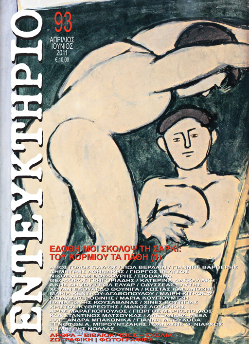 Στην πρώτη σελίδα του αφιερώματος η χειρόγραφη μετάφραση ενός ποιήματος του Βερλαίν από τον Γιάννη Βαρβέρη, αποσταλμένη στο «Εντευκτήριο» λίγες μέρες πριν την απόδρασή του, σαφώς και «ευλογεί» το όλο εγχείρημα, που θα έχει αλφαβητική συνέχεια στο επόμενο τεύχος. Έτεροι δοκιμαστές και δοκιμαζόμενοι: Δημήτρης Αθηνάκης, Γιώργος Βέλτσος, Νίκος Αδάμ Βουδούρης, Γιοβάννα, Κατερίνα Δασκαλάκη, Άκης Δήμου, Μαρία Κέντρου-Αγαθοπούλου, Μαίρη Κιτροέφ, Χρίστος Κυθρεώτης, Μάνος Λουκάκης, Κωνσταντίνος Ματσούκας, Αλεξάνδρα Μέξη, Αλεξάνδρα Μπακονίκα, Γιάννα Μπούκοβα, Ξενοφών Α. Μπρουντζάκης, Θανάσης Θ. Νιάρχος και Δημήτρης Νόλλας. Με ποίηση από τον Πωλ Ελυάρ και πεζογραφία από τους Χουάν Εδουάρδο Θούνιγα και Χινές Κουτίγιας. Ακόμα, τρία συμπληρώματα στον αφιερωματικό φάκελο του Πάνου Θασίτη (τεύχος 90, βλ. εδώ), θεατρικά σημειώματα, το φωτογραφικό πορτφόλιο του Άρι Γεωργίου «Homo Erectus», η γνωστή ύλη. Η ανάγνωση δε σταματά ούτε στην κρεβατοκάμαρα: εκεί μας περιμένουν πάντα τα Βιβλία στο κομοδίνο του Γιώργου Κορδομενίδη.