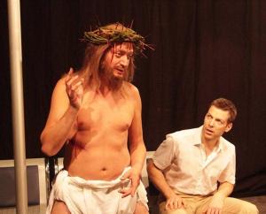 Στο Άδειο βαγόνι του Anthony P. Pennino βρίσκεται επιβάτης ένας ήρεμος, σκωπτικός, γήινος… Ιησούς, που αντιλαμβάνεται πως οι υπηρεσίες του δεν είναι πλέον απαραίτητες στον δυτικό κόσμο και πώς ονοματίζεται μόνο όταν πρέπει να αναλάβει βάρη. Και την οικονομική κρίση στο τέλος σ’ εμένα θα την φορτώσουν, μονολογεί ή μάλλον διαλογίζεται με τον δύσπιστο συνεπιβάτη του. Ένα θεατρικό παιχνίδισμα αντανακλά τα άπειρα καθρεφτίσματα της αναπαράστασης: ο ίδιος μας πληροφορεί για απόδραση τροφίμων φρενοκομείου αλλά και το ενδεχόμενο να στριμωχτεί σε μια off Broadway (και εντός Εξαρχείων!) ιστορία… Και λίγο πριν την μπορχεσιανή αυτοαναφορικότητα θα έχει προλάβει να μας θυμίσει: Δεν υπάρχουν αναπάντητες προσευχές· όλες οι προσευχές εισακούονται, απλά η απάντηση είναι «όχι». Αν ήταν να εισακούονται, όλος ο κόσμος θα φορούσε πάνες…