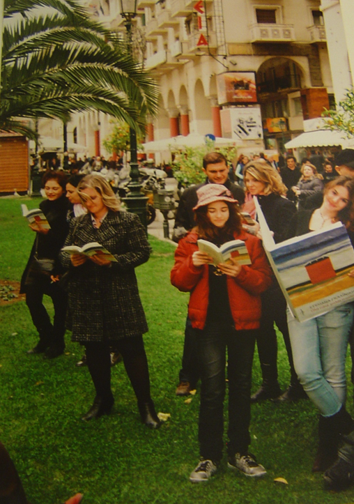 Πάντως, απ’ ό,τι φαίνεται το θέατρο συνεχίζει να με απασχολεί. Επέλεξα στις παρουσιάσεις και των δύο βιβλίων μου, μία θεατρική απόδοση όχι της συνολικής τους αφήγησης, αλλά ως δυνατότητα έκθεσης της δικής μου σχέσης με τα κείμενα, με τη συμβολή φίλων ηθοποιών από την Ενδοχώρα και δικών μου ανθρώπων. Οι παρουσιάσεις έγιναν καιρό μετά αφότου είχα γράψει τα βιβλία, και στο χρονικό αυτό διάστημα είχα τη δυνατότητα να στοχαστώ πάνω σε αυτά που έγραψα, στα πώς και τα γιατί. Η θεατρική απόδοση εξυπηρετούσε την έκθεση της δικής μου διερώτησης για τη σχέση μου με το κείμενο. Το ίδιο και το φωτογραφικό happening που έγινε κάποια στιγμή και ήταν ιδέα της φίλης μου φωτογράφου και εικαστικού Στεφανίας Βελδεμίρη. Πραγματοποιήθηκε στην πλατεία Αριστοτέλους και στο βιβλιοπωλείο Ιανός της ίδιας πλατείας. Στη δράση αυτή κλήθηκαν οι αναγνώστες να φέρουν το μυθιστόρημα «Όλα πάνε ρολόι (ή σχεδόν)» και να φωτογραφηθούν μαζί του, ώστε να γίνουν μέρος ενός έργου τέχνης και να θέσουν τον εαυτό τους υπό το βλέμμα των άλλων, κατά τον τρόπο που οι ήρωες ενός βιβλίου είναι κάτω από το βλέμμα του αναγνώστη. Αλλά και να εμπλακούν με αυτό κατά ένα διαφορετικό τρόπο πέρα από την ανάγνωση, όπου μπορεί και στη διάρκειά της να προβάλουν τον εαυτό τους μέσα στην αφήγηση, να γίνονται έτσι κι αλλιώς ήρωες ενός βιβλίου. Θα έλεγα, λοιπόν, ότι η σχέση μου ως συγγραφέα με τα κείμενά μου είναι υπό διαρκή αναζήτηση. Δεν τελειώνει κανείς με τα κείμενά του ποτέ, νομίζω.