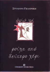 Ρούχα από δεύτερο χέρι – εκδόσεις University Studio Press: ένα σπονδυλωτό αφήγημα ή ένα πατρόν μυθιστορήματος; Γραμμένο σε διάστημα πολλών ετών, περίπου χρονιά και ιστορία. Η πρώτη ιστορία πάντως γράφτηκε εμπνευσμένη από τη φιλία μου με τη Δοκτίνη, η οποία μου μίλησε για ένα χωράφι που είχε δίπλα στη λίμνη Κερκίνη. Μετά το ένα έφερε το άλλο. Η κεντρική ηρωίδα ονόματι Φρα (από το Φράνκα), μοδίστρα θεατρικών κουστουμιών και καθημερινών ενδυμάτων αλλά και συγγραφέας θεατρικών κειμένων, είναι η αγαπημένη μου. Την έβαλα και στο μυθιστόρημα αλλά δεν έγραψα το όνομά της – είχε ράψει το νυφικό της Αλγερίας.