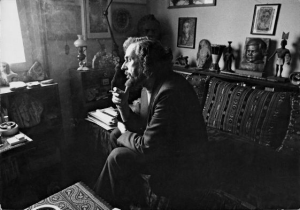 Μα τούτη η ώρα του δειλινού είναι ένα φρέσκο χρωματιστό γραμματόσημο που πρέπει να το φέρεις σα χείλη σου, να το σαλιώσεις και να το κολλήσεις στο φάκελο μιας ερωτικής επιστολής. […] Μπαίνω στην κουζίνα μου. Ετοιμάζω το απογευματινό μου τσάι. Το σερβίρω σε δυο φλιτζάνια. Γιατί, βέβαια, κάποιος πρέπει να ’ρθει. Είναι απαραίτητο. Μια ωραία λυπημένη γυναίκα, κάπως κουρασμένη. Θα χει πολύ ταξιδέψει και θα λέει άγνωστο ονόματα πόλεων, λιμανιών, ποταμών, πλοίων, οροσειρών. Κι όλα φιλικά απ’ το σχηματισμό των χειλιών της. Μεταφέρω το δίσκο στο μεγάλο δωμάτιο. Θέλω να μοιραστώ μαζί της τα χρώματα του δειλινού που λάμπου ακόμη στο ανοιχτό παράθυρο. Αν βγάλει τα παπούτσια της θα φέξουν ρόδινα τα δάχτυλα των ποδιών της. Αυτό το θέλω. Θα καθίσουμε στον ίδιο καναπέ πίνοντας το τσάι μας και κουβεντιάζοντας για κήπους και έφιππα αγάλματα. […] Και σμίξανε τα σώματά μας μες το μαβί βελούδινο βράδυ, ενώ η μισή φετίτσα λεμόνι έπλεε στο μισοπιωμένο τσάι μου όπως το μισοφέγγαρο στον αθηναϊκό ουρανό.