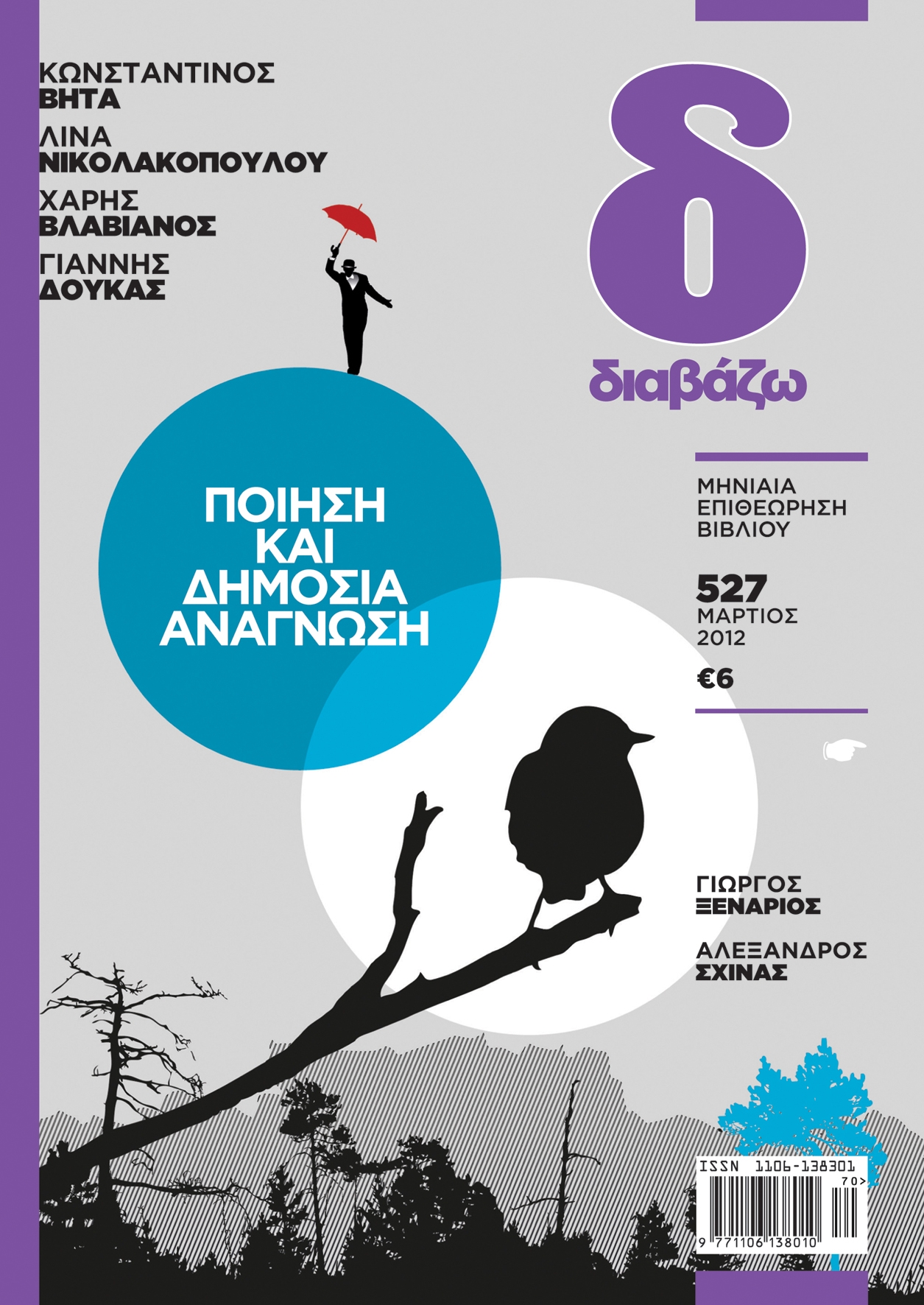 αφιέρωμα του τεύχους συνομιλούν ανά ζεύγη οι ποιητές Χάρης Βλαβιανός – Γιάννης Δούκας, και Λίνα Νικολακοπούλου – Κωνσταντίνος Βήτα και συμπεριλαμβάνονται κείμενα για τη νεότερη γενιά ποιητών στη χώρα μας, ανέκδοτα ποιήματα, η Αυτοπροσωπογραφία στα Είκοσι του Ρομπέρτο Μπολάνιο, μια εκτενής ποιητική σύνθεση της Anne Carson και μεταφράσεις ροκ ποιημάτων των Τομ Γουέιτς και Τζον Λένον. Το αφιέρωμα σχετίζεται άμεσα, όπως γράφει ο Γιάννης Ν. Μπασκόζος, με την σημερινή πολιτικού χαρακτήρα αφύπνιση των διανοούμενων και τις αυξανόμενες κινήσεις που έχουν στον πυρήνα τους ανθρώπους των γραμμάτων. Ο ίδιος περνά ένα πρωινό στο Παγκράτι με τον Τίτο Πατρίκιο συζητώντας για την επικαιρότητα. [120 σελ.]
