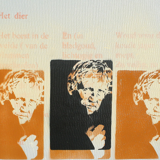 Στις φωτογραφίες: Louis Ferninard Celine, Samuel Beckett, Harry Mulisch, Kurt Vonnegut Jr., William Burroughs, Hugo Claus, Italo Calvino.