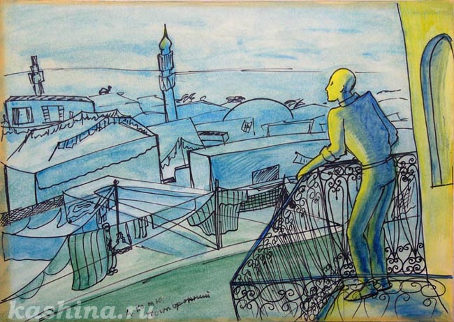 Οι εικόνες: Εvgeniya Kashina, Scenery sketch for a screen version «L’Etranger» by Albert Camus.