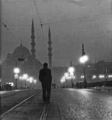 Εννοώ τα βράδια που έρχονται νωρίς, τους γερασμένους βιβλιοπώλες που έπειτα από κάθε οικονομική κρίση περιμένουν τρέμοντας από το κρύο στο μαγαζί τους όλη μέρα πελάτη, τα δεμένα στις άδειες αποβάθρες παλιά βαπόρια του Βοσπόρου, τις μαντιλοδεμένες γυναίκες με τις πλαστικές σακούλες στα χέρια που περιμένουν στις στάσεις των λεωφορείων, χωρίς να μιλάνε μεταξύ τους, το λεωφορείο που δεν έρχεται ποτέ, τα ξύλινα παλιά αρχοντικά που έχουν μετατραπεί σε δημαρχεία και που τα ξύλινα πατώμάτα τους βογκάνε σε κάθε βήμα, τις σφυρίχτρες των βαποριών στην ομίχλη, τα ερειπωμένα βυζαντινά τείχη….
