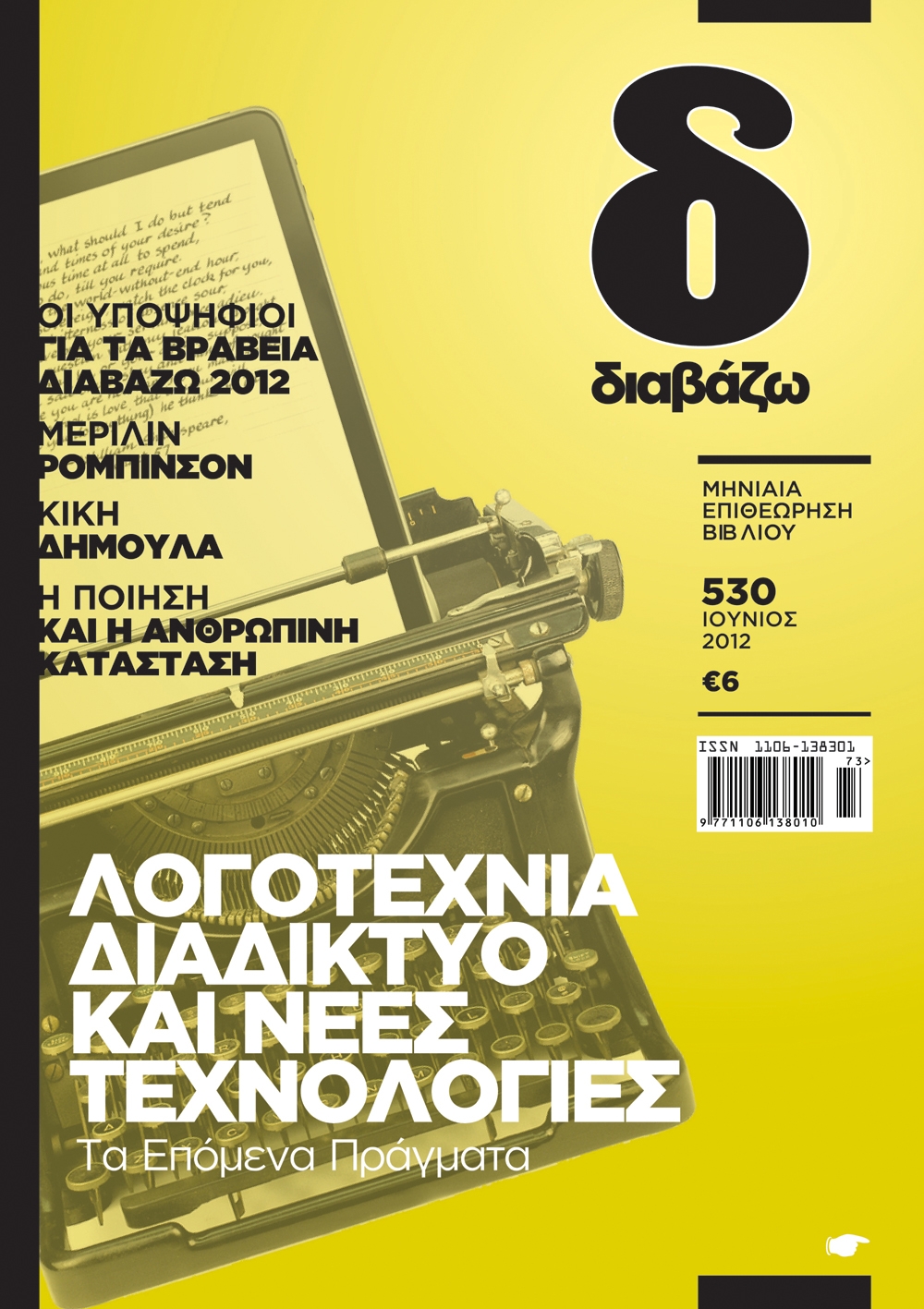 Το μηνιαίο αφιέρωμα που χαρτογραφεί τις σχέσεις λογοτεχνίας και διαδικτύου και αποτυπώνει τις επιρροές των νέων τεχνολογιών στην σύγχρονη ελληνική λογοτεχνική κοινότητα. Τα κείμενα του αφιερώματος (επιμ. Χριστιάνας Μυγδάλη) αφορούν την Βιβλιοφιλική Μπλογκόσφαιρα (Γιώργος Περαντωνάκης), τις Ηλεκτρονικές εκδόσεις σε σχέση με την νεοελληνική λογοτεχνία (Άννα-Μαρία Σιχάνη), τα πνευματικά δικαιώματα των e-books (Γιάννης Φαρσάρης), τα «επόμενα πράγματα» (Παναγιώτης