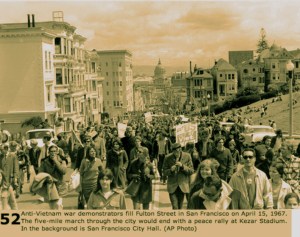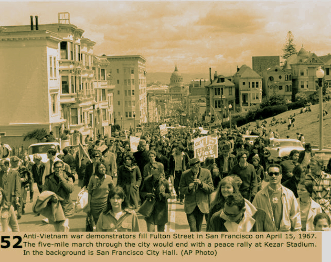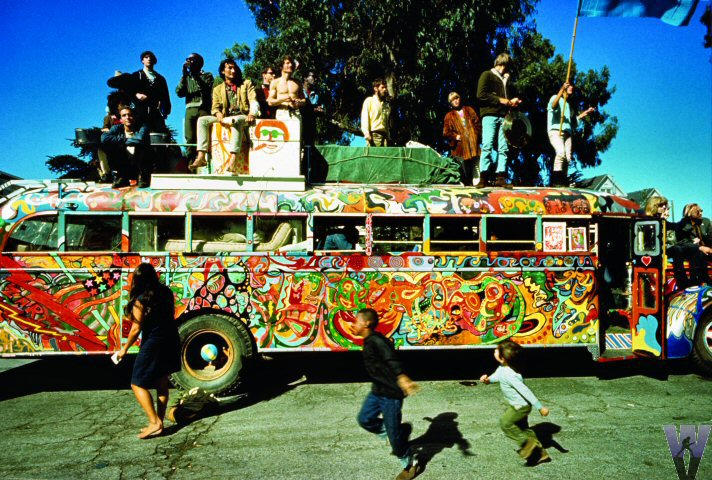 Στις εικόνες: η θρυλική γωνία, το μαγικό λεωφορείο του Ken Kesey Brian Jones Jimi Hendrix, Timothy Leary, πορεία κατά του Βιετνάμ στο Σαν Φρανσίσκο (1967), Dr Leary μπροστά στο κοινό του, Allen Ginsberg.