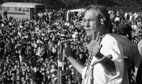 Θα διατρανώσουμε και θα αναδείξουμε την πνευματική επανάσταση. Ενωμένοι θα λούσουμε τη χώρα σε κύματα έκστασης και εξαγνισμού. Ο φόβος θα εξαλειφθεί· η άγνοια θα εκτεθεί στο λαμπρό φως του ήλιου· κέρδη και αυτοκρατορίες θα γείρουν θνήσκουσες σε ερημωμένες παραλίες· η βία θα πνιγεί και θα μετουσιωθεί σε ρυθμό και χορό. [Berkeley Barb, σ. 186]