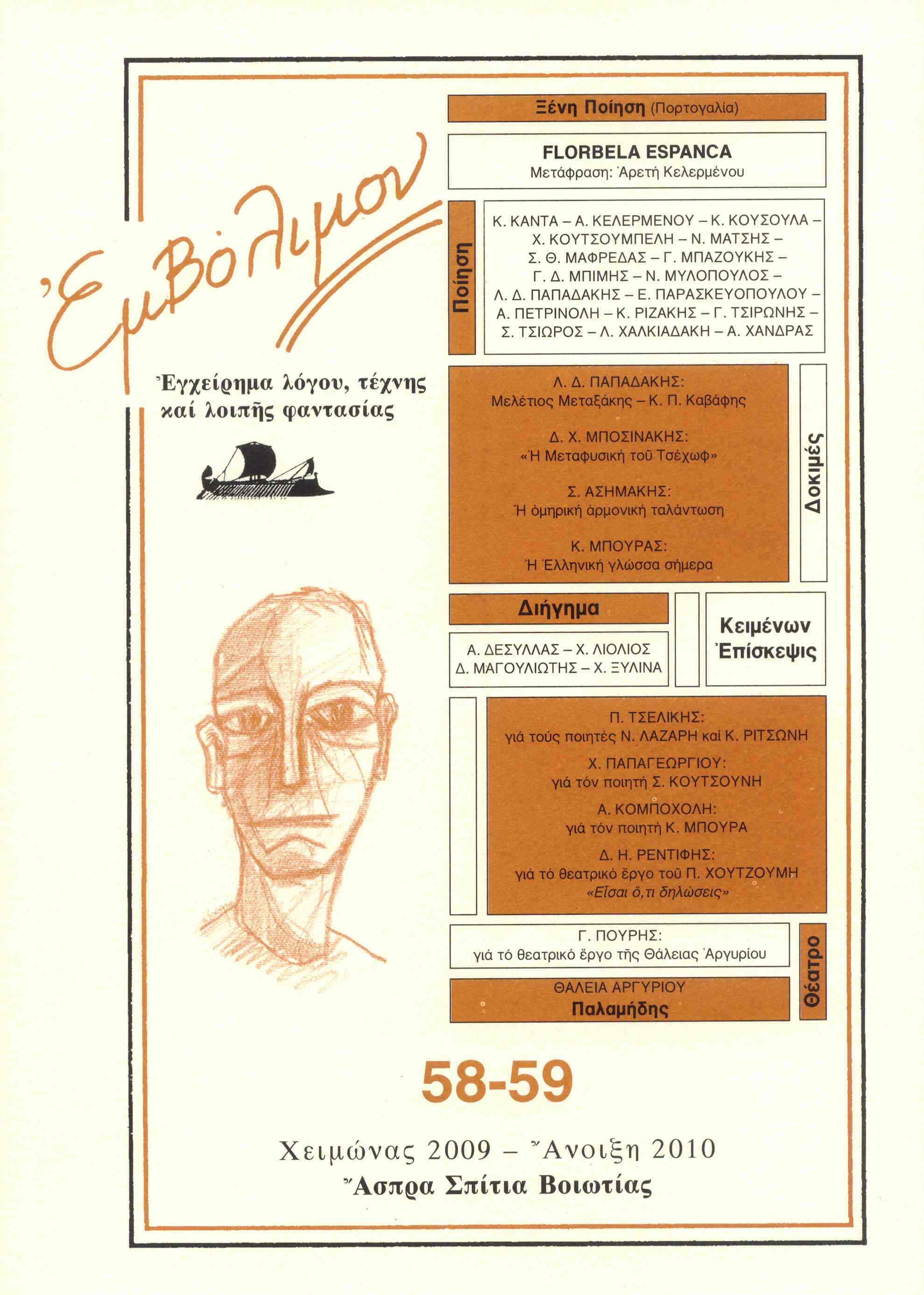 … έγραφε στο ποίημα Να είσαι ποιητής η Φλορμπέλα Εσπάνκα (Florbela Espanca, 1894 – 1930), μια από τις σημαντικές ποιήτριες της Πορτογαλίας, που αυτοκτόνησε την ημέρα των 36ωνγενεθλίων της, μετά από τρεις γάμους και δυο απόπειρες αυτοκτονίας. Το τεύχος μάς δωρίζει σε εισαγωγή και μετάφραση Αρετής Κελερμένου μια δίγλωσση έκθεση (πρωτότυπο και μετάφραση) τεσσάρων ποιημάτων της ερωτικότατης και υπερευαίσθητης ποιήτριας που δεν συνδέθηκε με κάποιο συγκεκριμένο λογοτεχνικό κίνημα παρά έμεινε κοντά στον νεορομαντισμό και την τεχνική των σοννέτων του Antero de Quental και του φημισμένου Camōes.