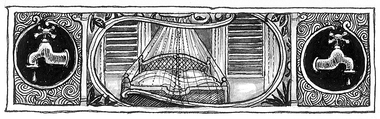 Εκείνη τη στιγμή, όπως τα σκεφτόμουνα αυτά σε μια κατατονική κατάσταση βυθισμένος, με τα μάτια μου προς την κορυφή της κουνουπιέρας, σα να προσευχόμουνα, τράβηξε την προσοχή μου, πίσω από τη βελουδένια εκείνη κουρτίνα που έκρυβε το μπάνιο μου, ο γνωστός σε μένα θόρυβος από μια σταλαγματιά νερού, που άλλες στιγμές ήταν ικανός να μου φέρει την τρέλα. «Η στρόφιγγα, η στρόφιγγα», σκέφτηκα (ένα απαρχαιωμένο και επανειλημμένα επισκευασμένο χάλκινο εξάρτημα του μπάνιου), «άρχιζε να στάζει πάλι. Τι απαίσιοι είναι να μη φροντίζουν να τη φτιάσουν, και πληρώνω ένα σωρό χρήματα γι’ αυτό το καταραμένο δωμάτιο…Θα τους κάνω μήνυση…Δε θα ξαναμείνω άλλο εδώ…. [σ. 62 – 63]