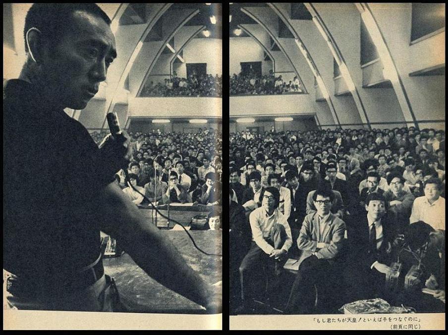 Το σχέδιό τους πήγαινε κατ’ ευχήν: έδεσαν και φίμωσαν τον στρατηγό Μασίτα μέσα στο γραφείο του, εξουδετέρωσαν τη φρουρά του σε μάχες με ξίφη και απαίτησαν να συγκεντρωθεί η φρουρά του Ανατολικού Στρατού, περίπου χίλιοι στρατιώτες, για να τους μιλήσει από το μπαλκόνι ο συγγραφέας. Οι θεμελιώδεις αξίες μας ως Ιαπώνων απειλούνται. Δεν δίνεται στον Αυτοκράτορα η δίκαιη θέση του στην Ιαπωνία. Αφήστε μας να αποκαταστήσουμε την πραγματική θέση της