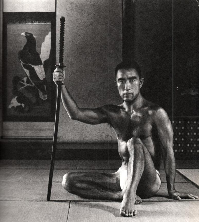 Την μεταπολεμική εποχή, όπου όλες οι αποδεκτές αξίες είχαν διαταραχθεί, σκεφτόμουν συχνά και επισήμαινα στους άλλους πως ήταν η καταλληλότερη στιγμή για την αναβίωση του παλαιού ιαπωνικού ιδεώδους, ενός συνδυασμού των γραμμάτων με τις πολεμικές τέχνες, της τέχνης με τη δράση. […] Το δικό μου κράμα “τέχνης και δράσης” ήταν ο εναγκαλισμός της διπολικότητας μέσα στον εαυτό και η αποδοχή της αντίφασης και της σύγκρουσης. [από το αυτοβιογραφικό του δοκίμιο Ήλιος και ατσάλι, εδώ σ. 180]. // Χάρη στον ήλιο και το ατσάλι, επρόκειτο να μάθω τη γλώσσα της σάρκας, περίπου όπως μπορεί κάποιος να μάθει μια ξένη γλώσσα. Ήταν η δεύτερη γλώσσα μου, μια έκφανση της πνευματικής μου εξέλιξης. [σ. 217]