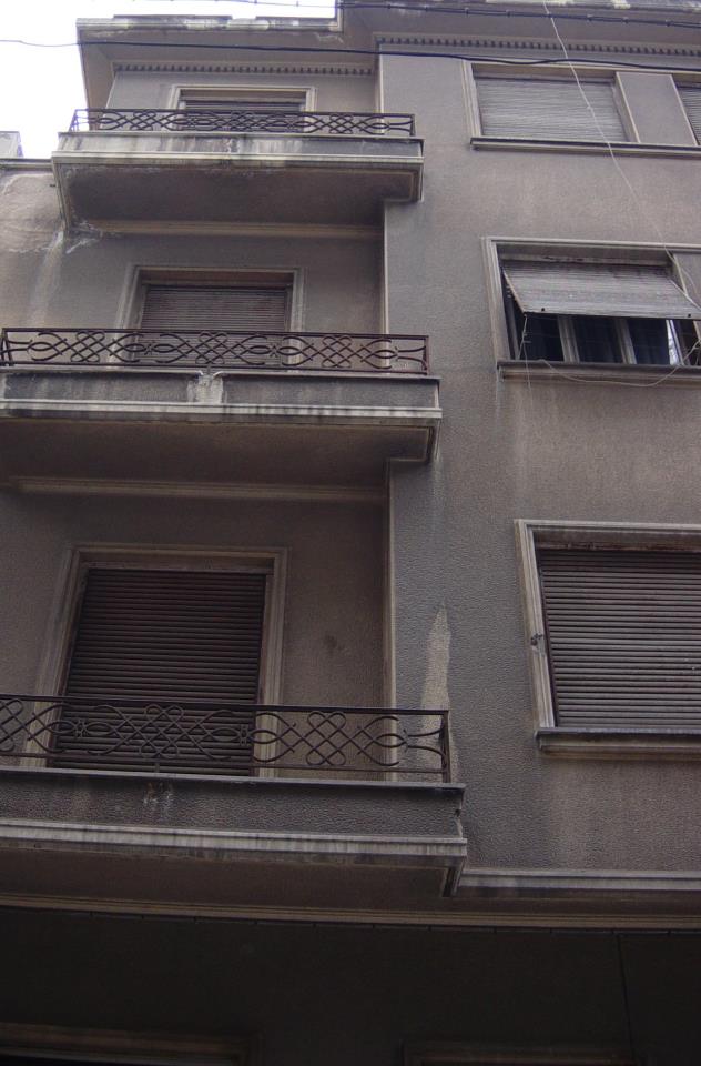 Στην δεύτερη φωτογραφία (τραβηγμένη από τον συγγραφέα): κτίσμα στην οδό Μιχαήλ Βόδα, δρόμο του μυθοπλασμένου κτιρίου, με πολλά εκ των υστέρων ανακαλυφθέντα κοινά στοιχεία.