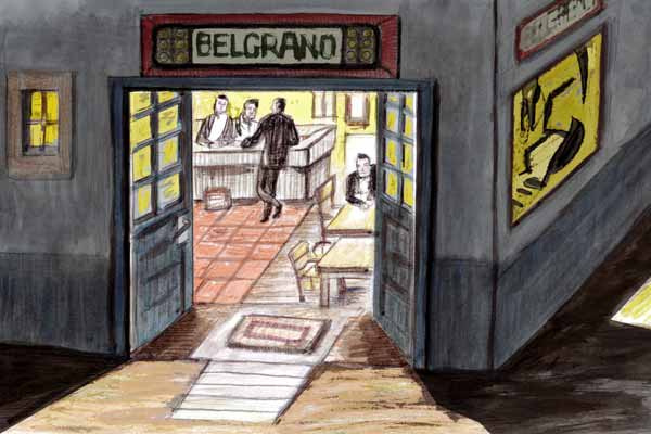 Τα μεσημέρια και το βράδυ βολοδέρνει στου Μπελγκράνο – μπαρ – εστιατόριο – ξενοδοχείο και εμπορικό κατάστημα μαζί. Κάποτε, μπροστά στη μοναξιά και το κρύο, επισκέπτεται την ξύλινη παράγκα όπου ζει ο Γκάλβες με την γυναίκα του, μεταξύ του λεμβοστασίου κι ενός καλαμιώνα. Ξεχνούν τη γελοία πρόφαση της επίσκεψης και μοιράζονται το φαγητό και το φτηνό πότο. Η διόλου ελκυστική γυναίκα με το αντρικό πανωφόρι γίνεται για τον ίδιο η απαραίτητη συντροφιά στα βράδια που οι τρεις θα μοιράζονται από εδώ και μπρος. Επιθυμώντας απεγνωσμένα να ασκήσει ξανά την τεχνική του ξελογιάσματος κάποια στιγμή θα κάνει δώρα τόσο στην Ανχέλικα όσο και στην γυναίκα του Γκάλβες· ένας παλιός εραστής, που εδώ και χρόνια γνωρίζει πως «το πλησίασμα μιας γυναίκας δεν ήταν τίποτε άλλο από μία απαραίτητη τελετουργία, μια αποστολή που πρέπει να επιτελεστεί».