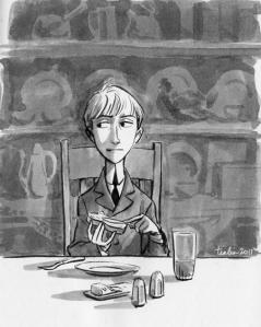 Αμέσως έτρεξα στον Σρέντνι Βαστάρ για να ξαναδιαβάσω την ιστορία του δεκάχρονου Κόνραντιν και της κηδεμόνος του κυρίας ντε Ροπ, που στα μάτια του αντιπροσώπευε «εκείνα τα τρία πέμπτα του κόσμου που είναι αναγκαία, δυσάρεστα και πραγματικά»· τα υπόλοιπα δύο πέμπτα συνοψίζονταν σε κείνον και στη φαντασία του. Οι σπάνιες απολαύσεις του πρόσφεραν επιπρόσθετη ευχαρίστηση αν υπήρχε η πιθανότητα να είναι δυσάρεστες σ’ εκείνη ενώ εκείνη με τη σειρά της δεν θα ομολογούσε ποτέ στον εαυτό της ότι τον απεχθανόταν. Ο κόσμος του μικρού περιορίζεται στον μουντό μελαγχολικό κήπο, όπου τα παράθυρα είναι έτοιμα κάθε στιγμή να ανοίξουν για να βγει η εντολή «να μην κάνει ετούτο ή εκείνο».