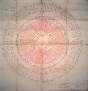 Frances Yates’ reconstruction of Giordano Bruno’s memory wheel from `De Umbris Idearum’1