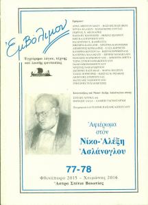 Εμβόλιμον, τεύχος 77 – 78 (Φθινόπωρο 22015 – Χειμώνας 2016). Αφιέρωμα στον Νίκο – Αλέξη Ασλάνογλου
