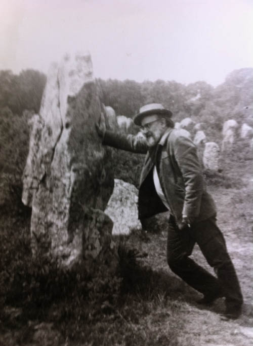 Άρης Αλεξάνδρου (Στο Καρνάκ, ακουμπά σε ένα μενίρ, περίπου 1975)