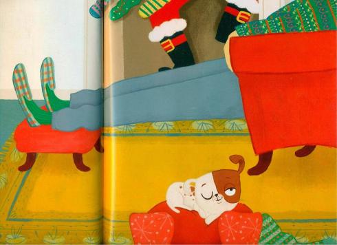 Η πρώτη δεκάδα: Φράση που συνηθίζουμε να λέμε στις λίστες των επιλογών μας. Η κυριολεκτική πρώτη δεκάδα όμως είναι θαμμένη στα πιο παλιά μας κατάστιχα: ήταν πρώτη αρίθμηση από το ένα ως το δέκα. Δεν θυμάμαι πότε, πού και πώς, μόνο αμυδρά κάποια εικονογραφημένα ζωάκια, μάλλον αγελάδες. Ήταν ευχάριστη εκείνη η μονοψήφια εμπειρία! Τώρα σκοπεύω να την ξαναζήσω στα μάτια μιας άλλης ψυχής, όταν ανοίξω μπροστά της το βιβλίο με 1, 2, 3, 4, 5, 6, 7, 8, 9, 10, 11, 12 σκυλάκια που ανά δισέλιδο αυξάνονται ανά ένα και κοιτάζουν έκπληκτα την γιορτινή διακόσμηση, παγώνουν τα αυτιά τους στο κρύο, κάνουν ζημιές στην κουζίνα, ταλαιπωρούν το έλατο, καρφώνονται στα γλυκά, γαβγίζουν μελωδικά και δίνουν τα δικά τους δώρα, ακόμα κι όταν δεν το καταλαβαίνουν. Θα είναι ωραία η αναζήτηση και καταμέτρηση των σκυλιών μέσα σ’ αυτή την πανδαισία των χρωμάτων. Και βέβαια στο τέλος θα μας περιμένει μια παλιά αγαπημένη εικόνα ιδίως των κινούμενων σχεδίων, εκείνη όπου ο φακός κατεβαίνει στα χαμηλά, βρισκόμαστε στον ύψος τους και παρατηρούμε μόνο τα πόδια των δίποδων. Κάτι κράτησα κι εγώ στη μνήμη μου!