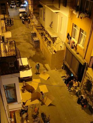 Σουρούπωνε όταν επέστρεφα εξαντλημένος με το σημείωμα της Ηλέκτρας στο χέρι, για ένα χόστελ σε μια πάμφθηνη περιοχή κάτω απ’ την πλατεία Ταξίμ. «Αν ποτέ βρεθείς στην Κωνσταντινούπολη εκεί να μείνεις, θα καταλάβεις γιατί». Κατηφόρισα την λεωφόρο Ταρλάμπασι, που βυθιζόταν στο γκρίζο τσιμέντο των βρώμικων πεζοδρομίων για να χαθεί λίγο παρακάτω σε υπόγειο τούνελ, κι έστριψα από ένα στενάκι σ’ έναν σε άλλο κόσμο. Αβυσσαλέες κατηφόρες κατέληγαν σε μικρά σταυροδρόμια κι ύστερα ξανά σε απότομες ανηφόρες, σε μια συνεχή εναλλαγή. Κατέβαινα στον πάτο της πόλης, στις φτωχογειτονιές του Ταρλάμπασι και του Μπουλμπούλ, στα έγκατα της Κωνσταντινούπολης, μακριά από τα περάσματα των τουριστών. Σε δρόμους γεμάτους πεταμένα ή άχρηστα αντικείμενα όλοι βρίσκονταν έξω, όρθιοι ή καθισμένοι στα κατώφλια των άθλιων κτισμάτων ή σε χαρτόνια που είχαν απλώσει στην άκρη, ενώ δεκάδες παιδιά έφτιαχναν αυτοσχέδια παιχνίδια από οτιδήποτε τριγύρω. Οι περισσότερες γυναίκες με τις παντόφλες τους, ένα βασίλειο γυμνών ποδιών στις αρχές μιας ψυχρής άνοιξης. Πίσω από τις πόρτες ασφυκτιούσε ένα άφωτο εσωτερικό. Τι προκαλούσε περισσότερο την επιθυμία αυτών των ανθρώπων να ζουν έξω; Τα πνιγηρά τους σπίτια, μια ασίγαστη ροπή συνύπαρξης ή κάτι άλλο; Τα κτίρια έμοιαζαν έτοιμα να γκρεμιστούν αν ένα παραπάνω ρούχο βάραινε τα τεντωμένα σχοινιά ανάμεσα στα αντικριστά παράθυρα. Άλλα ήταν μαυρισμένα, εφ’ όρου ζωής καμένα από τα γεγονότα του ’55.