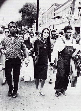 Μια μαυρόασπρη φωτογραφία με αναστάτωσε για τα καλά. Δυο μαύροι άντρες είχαν στη μέση μια λευκή γυναίκα και περπατούσαν με σφιχτά χέρια σε μια πορεία. Εκείνη ήταν όμορφη και ξυπόλητη. Μου εξήγησε: ο από δω είναι ένας φοβερός συγγραφέας, ο James Baldwin· ο από κει είναι αρχηγός των κινημάτων για τα ανθρώπινα δικαιώματα των μαύρων, ο James Forman· και στη μέση, μια σούπερ τραγουδίστρια, η Joan Baez. Συμμετείχαν στην μεγάλη πορεία του 1965 από την Selma της Αλαμπάμα προς την πρωτεύουσα Montgomery, με αίτημα την κατοχύρωση πολιτικών δικαιωμάτων στους αφροαμερικανούς. Περπατούσαν για πέντε μέρες, από τις 21 ως τις 25 Μαρτίου, ενώ τις νύχτες κατασκήνωναν στις αυλές όσων τους υποστήριζαν και τους προσκαλούσαν. Μου μίλησε για τον Martin Luther King που «οδηγούσε» την πορεία, για το γεγονός ότι εκείνη η μαζική διαδήλωση πέτυχε τον σκοπό της. Δεν θυμάμαι πόση ώρα έμεινα αποσβολωμένος να κοιτάζω την ξυπόλητη κοπέλα στην διπλά θαρραλέα της πράξη – είχε τολμήσει κάτι που ελάχιστοι λευκοί εκείνη την εποχή θα έκαναν δημόσια. Οι αγωνίστριες δεν αμφισβητούσαν μόνο τους άδικους νόμους της πολιτικής αλλά και της υπόδησης! Ποια ήταν αυτή η γυναίκα και ποιους αγαπούσε; Πώς έφτανε κανείς σε τέτοιες γυναίκες;