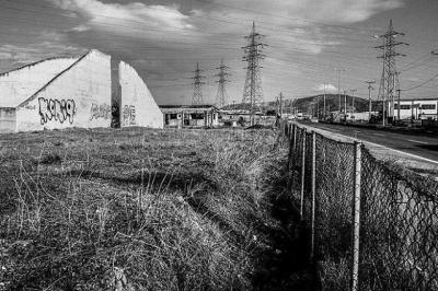Εκκρεμείς εργοστασιακές μονάδες και μολυσμένα βοσκοτόπια· υπαίθριοι ή κλειστοί αποθηκευτικοί χώροι· μάντρες αυτοκινήτων και υπερφυών ανταλλακτικών· ημιτελείς κατασκευές και χαλάσματα κάθε είδους, προκατασκευασμένα σπίτια και περιφράξεις. Καφετέριες και καντίνες με μουσαμάδες, πλαστικά διαφημιστικά σταντ και συνθετικούς χλοοτάπητες στραβοκομμένους με κοπίδι. Παράδρομοι που εξαχνώνονται σε σημεία εκτός σχεδίου, αυτοσχέδια χαραγμένοι, χωρίς πεζοδρόμια, χωρίς τεχνική ονομασία, μέχρι κι ένα απόκρυφο βοσκοτόπι. Μιζεριασμένες ελιές, πυλώνες της ΔΕΗ, μάντρες και βιοτεχνίες, ακόμα και μια εκκλησία νάνος και δη ρωσικού ρυθμού, η πλέον «απρόβλεπτη» εικόνα. Σύγχρονα χαλάσματα που δεν κουβαλούν κανένα συμβολισμό, μόνο χάσκουν δύσμορφα. Αυτά τα ερείπια δεν θα γοητεύσουν κανέναν περιπατητή, όπως συνέβαινε με τα αρχιτεκτονικά κατάλοιπα της αρχαίας ομορφιάς.