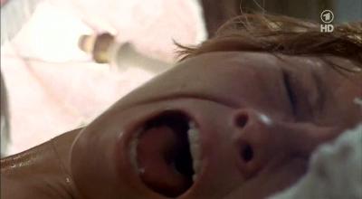 Επιστρέφει στο σπίτι όπου βρίσκεται μόνη, καθώς ο άντρας της, πλοηγός της Air France, πρόκειται να επιστρέψει τη νύχτα. Βγάζει τα παπούτσια της και κοιτάζει το πέλμα της, όπου κάτι την ενοχλεί. Οι κάλτσες της έχουν το χρώμα του δέρματος με μια στρώση κανέλας. Τις βγάζει αργά, -καθώς η ελαστικότητα τις τεντώνει σε απόλυτη ευθεία, νοιώθω πως ήδη βαδίζει σε τεντωμένο σχοινί- και τις ακουμπά συμμετρικά στην ράχη της καρέκλας. Καθώς επιστρέφει στο δωμάτιο βλέπει την μία να λείπει και δεν προλαβαίνει να σκεφτεί οτιδήποτε άλλο. Ένας άντρας την δένει με την ζώνη του μπουρνουζιού της, την ακινητοποιεί στο κρεβάτι και την βιάζει. Η αίσχιστη προαιώνια πράξη αποδίδεται με ρεαλισμό απόλυτο και δυσεύρετο μέχρι τότε στο σινεμά. Οι συσπάσεις στο πρόσωπό της εκφράζουν το ανέκφραστο. Η κάλτσα που έλειπε βρίσκεται στο πρόσωπό του, μια νάιλον μάσκα του κακού.