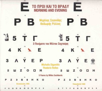 Μίλτος Σαχτούρης, Η Μαρία, Τα φάσματα ή Η χαρά στον άλλο δρόμο, Αθήνα, 1958· Φθινόπωρο, Ο περίπατος, Αθήνα, 1960· Στον Ντύλαν Τόμας, Το σκεύος, εκδ. Κείμενα, 1971· Ποιήματα 1945-1971, [συγκεντρωτική έκδοση], εκδ. Κέδρος, 1977, Ντύλαν Τόμας, Προοπτική της Θάλασσας [1955], Πεζά, εκδ. Πλέθρον, 1983, μτφ. Μιράντα Σταυρίνου [σ. 12]. Το κομμάτι Το πρωί και το βράδυ συμπεριλαμβάνεται στον δίσκο του Μιχάλη Σιγανίδη Το πρωί και το βράδυ (1990). Τηρείται η στίξη ακριβώς όπως ακούγεται στην ηχογραφημένη φωνή του ποιητή.