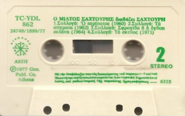 Πρώτη δημοσίευση: Περιοδικό Εμβόλιμον, τεύχος 93-94 (2021), Αφιέρωμα στον Μίλτο Σαχτούρη, σελ. 113-119.