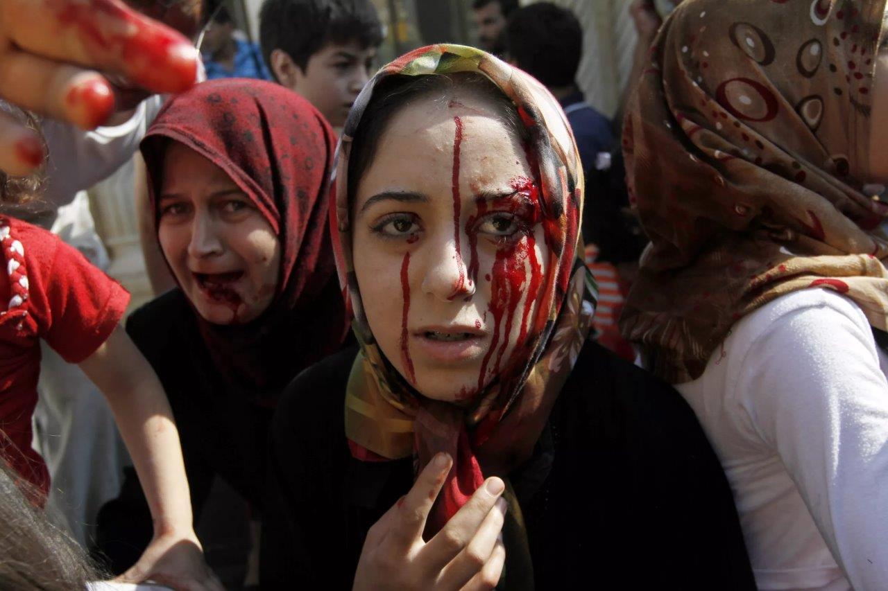 Injured Syrian women arrive at a field hospital after an airstrike in the town of Azaz, on the outskirts of Aleppo, Syria. (Khalil Hamra – Associated Press)