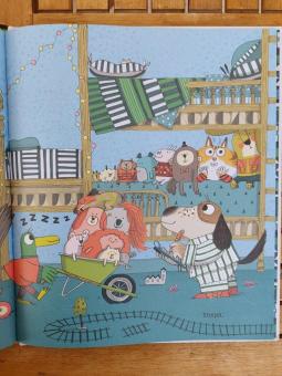 Πώς μας παγιδεύει, λοιπόν, το βιβλίο στην σχετική προετοιμασία; Μας υπόσχεται ότι μας περιμένει η πιο σύντομη ιστορία καληνύχτας του κόσμου! Μα αν ισχύει κάτι τέτοιο, τι άλλα θα συμβεί στις υπόλοιπες σελίδες; Μια τρισχαριτωμένη συντροφιά πέντε ζώων περιμένει πώς και πώς να την ακούσει. Έχουν μόλις αρχίσει τις ετοιμασίες για ύπνο: τα ξύλινα κρεβάτια τους είναι όλα ενωμένα σε μια περίτεχνη κατασκευή με διαφορετικά ύψη, κουκέτες και τα συναφή. Πρέπει όμως κι εμείς να πάρουμε μέρος στην σχετική προετοιμασία, δεσμευόμενοι πρώτα πρώτα, οι μεν μικροί αναγνώστες ότι θα κοιμηθούν μόλις τελειώσει το βιβλίο, ο δε μεγάλος μεγαλόφωνος αναγνώστης ότι θα διαβάσει με την καλύτερη φωνή του.