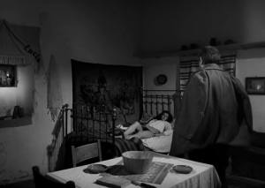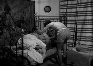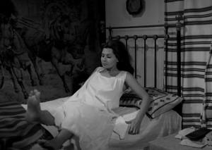Ένα βράδυ υποδέχτηκε τον σύζυγό της ξαπλωμένη· είχε τα πόδια της γυμνά ως πάνω κι ένα βλέμμα συνώνυμο της αναμονής. Εκείνος ρίχτηκε πάνω της για να εκτονωθεί και μετά έγειρε να κοιμηθεί. Τότε η κάμερα κατέβηκε στα πόδια του κρεβατιού και πλησίασε κατά μέτωπο τα ένα της πέλμα, που πρώτα αργοσάλευε κι ύστερα τεντώθηκε ελαφρά προς τα πάνω, για να ζητήσει από τα κάγκελα του κρεβατιού ένα χάδι, όσο ψυχρό κι αν ήταν, μαρτυρώντας την ανεξέλεγκτη πια επιθυμία που αναζητούσε διέξοδο. Ήταν μια σκηνή πρωτοφανής στην κινηματογραφία και θα παρέμενε σπάνια ως σήμερα: μια ωραιότατη πατούσα ως καιόμενη βάτος της λαγνείας σ’ ένα κατάδικό της κάδρο.