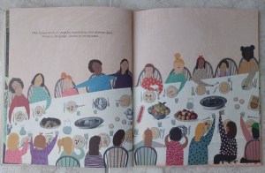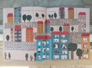 Όλη αυτή η κοινότητα των παιδιών κάθε ηλικίας αποδίδεται ακριβώς με τον τρόπο που τα ίδια θα δοκίμαζαν να την σχεδιάσουν, έχοντας όμως δίπλα του ένα πλήθος υλικών για ανάμειξη, μια μεγάλη παλέτα χρωμάτων και μια ικανή δασκάλα σαν την συγγραφέα. Θα έβαζαν στην ίδια σελίδα ποικίλα μεγέθη μορφών, θα την γέμιζαν με μεγάλα πρόσωπα, χαρούμενα και λυπημένα, εναλλάξ θα πρόσεχαν και θα αδιαφορούσαν για τις συμμετρίες αλλά πάνω απ’ όλα –κι εδώ έρχεται η τέχνη της Γκιοκτσέ Ιρτέν–, θα έφτιαχναν ευφάνταστα κολλάζ με μαυρόασπρες κι έγχρωμες φωτογραφίες, σχέδια και σκίτσα, χωρίς να μειώνεται η τέχνη της ζωγραφικής. Και με τον τρόπο αυτό είτε εστιάζοντας σε κάποιο παιδί από κοντά, στον μικρόκοσμό του, είτε δείχνοντας πότε τον κόσμο από μακριά κι από ψηλά, την μεγάλη κοινότητα που αποτελούμε. Ακριβώς όπως γίνεται και εδώ.