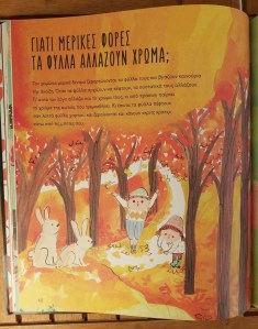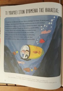 Δυο στοιχεία καθιστούν αξιοδιάβαστη αυτή την πιθανώς πρώτη για κάθε παιδί πολύτιμη εγκυκλοπαίδεια. Αφενός οι γνώσεις δεν εκτίθεται ως τυφλοσούρτης αλλά εκκινούν πάντα από ένα ερώτημα, που δημιουργεί μια αίσθηση διαλόγου. Αφετέρου, οι ερωτήσεις δεν απαντιούνται μόνο με λέξεις αλλά και με ολοσέλιδη εικόνα, γιατί ξέρουμε καλά πως, όσο ενδιαφέρον κι αν έχουν, οι ξερές, χωρίς εικονογράφηση γνώσεις, κινδυνεύουν να ξεχαστούν. Έτσι, όταν στο ερώτημα «τι υπάρχει μέσα στο έδαφος» βλέπουμε μπροστά μας στις διαστρωματώσεις του, σωλήνες νερού, καλώδια ηλεκτρισμού, κι ακόμα πιο κάτω σπασμένα αγγεία, χαμένα κοσμήματα, αρχαία κόκαλα και θαμμένους θησαυρούς, τότε η εικόνα εντυπώνεται ζωηρά εντός μας.