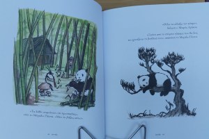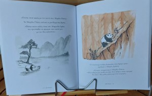 Οι δυο συνοδοιπόροι. Συνοδοιπόροι του ταξιδιού του αλλά και μεταξύ τους, ένα μεγάλο Πάντα κι ένας μικροσκοπικός Δράκος, τα δυο ζώα της κινεζικής επικράτειας – πόσο αταίριαστα μοιάζουν, ο υποθετικά τρομακτικός και ο γνωστός ήρεμος, ο μεγάλος στο μέγεθος με τον μικροσκοπικό – γνωρίζονται και δίνουν τα χέρια· μια καινούργια μέρα ξεκινάει, μαζί με μια νέα αρχή φιλίας· η συνέχεια είναι άγνωστη, κι αυτό δίνει ομορφιά στην ζωή. Τι είναι σημαντικότερο, το ταξίδι ή ο προορισμός; ρωτάει το Πάντα, η παρέα, απαντά ο Δράκος. Έχω πολλή δουλειά και δεν προλαβαίνω να χαζέψω τα λουλούδια, λέει ο τελευταίος, τότε ένας λόγος παραπάνω να τα χαζέψεις γιατί αύριο μπορεί να μην υπάρχουν, υποστηρίζει το Πάντα. Δεν πρέπει να βρίσκουμε χρόνο για να χαιρόμαστε τα μικροπράγματα της ζωής; Ο μεταξύ τους διάλογος κάθε φορά αποκαλύπτει κι ένα ψήγμα πολύτιμης σκέψης και αν το Πάντα είναι εκείνο που τις προτείνει, ο Δράκος τις δημιουργεί με τις ίδιες του τις ερωτήσεις.